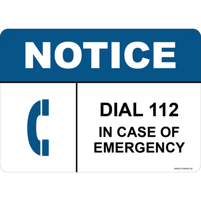 You're reviewing: G Signage - "Dial 112 In Case Of Emergency" - OSHA Notice Sign